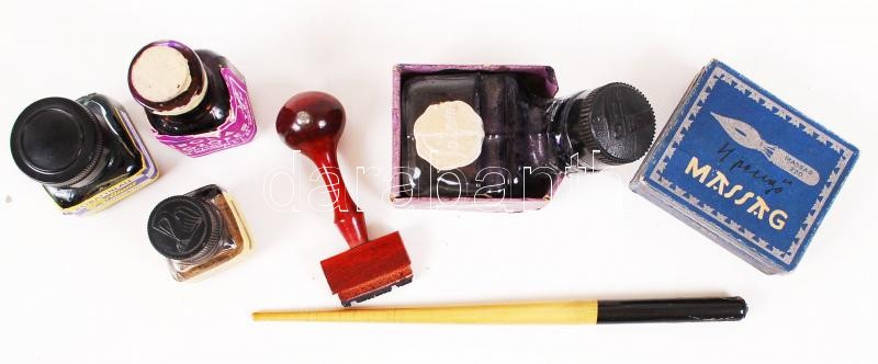 Vegyes írószerek, üvegcsék, tollvégek, pecsétnyomó, 7 db. https://www.darabanth.com/de/198-Fernauktion/198.0/Andere-Sammelgebiete/Flohmarkt~200023/Vegyes-iroszerek-uvegcsek-tollvegek-pecsetnyomo-7-db~II769799