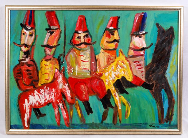 Schéner Mihály (1923-2009): Huszárok. Olaj, farost, keretben, 50×70 cm https://www.darabanth.com/de/198-Fernauktion/198.0/Andere-Sammelgebiete/Gemalde-und-Grafiken~200001/Schener-Mihaly-1923-2009-Huszarok-Olaj-farost-keretben-50C39770-cm~II770128