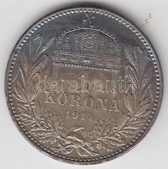 1914. 1K Ag "Ferenc József" T:1- patina https://www.darabanth.com/de/198-Fernauktion/198.0/Numismatik/Ungarische-Munzen~8/1914-1K-Ag-Ferenc-Jozsef-T1-patina~II769316