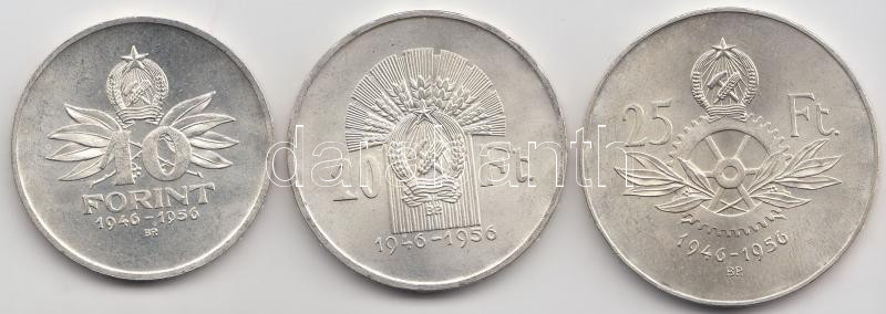 1956. 10Ft + 20Ft + 25Ft Ag "10 éves a Forint" sor T:1 https://www.darabanth.com/de/198-Fernauktion/198.0/Numismatik/Ungarische-Munzen~8/1956-10Ft-plus-20Ft-plus-25Ft-Ag-10-eves-a-Forint-sor-T1~II768073