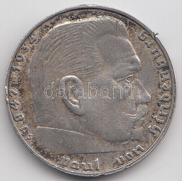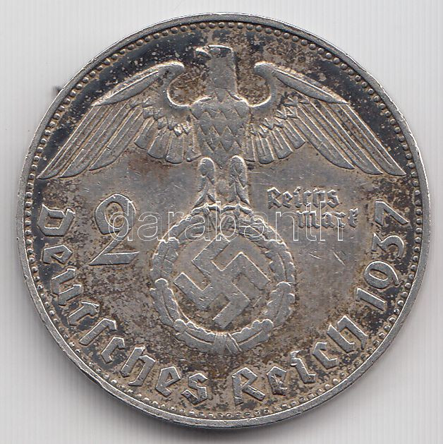 Német 3. Birodalom 1937J 2M Ag "Hindenburg" T:2 ph. German Third Reich 1937J 2 Marks Ag "Hindenburg" C:XF edge error Krause KM#93