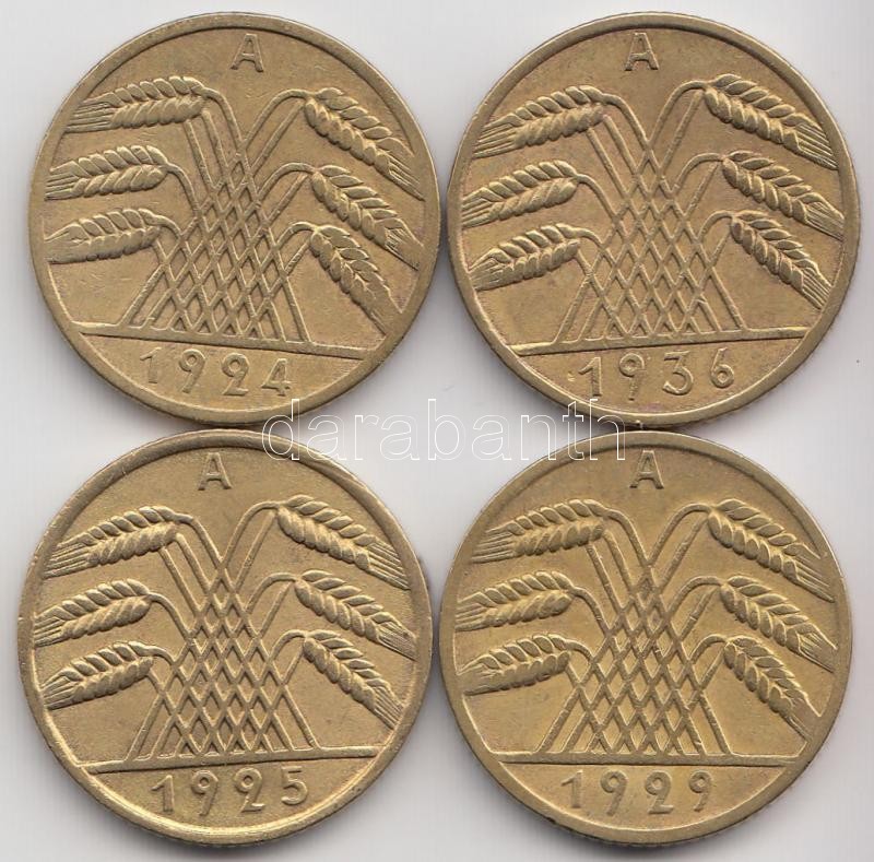 Német Birodalom/Weimari Köztársaság 1924A 10Rpf + 1925A 10Rpf + 1929A 10Rpf + 1936A 10Rpf T:2