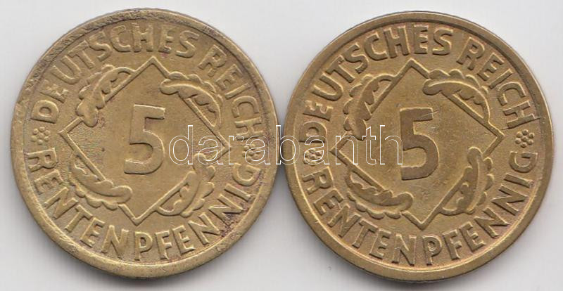 Német Birodalom/Weimari Köztársaság 1924A. 5Rpf + 1924J 5Rpf T:2