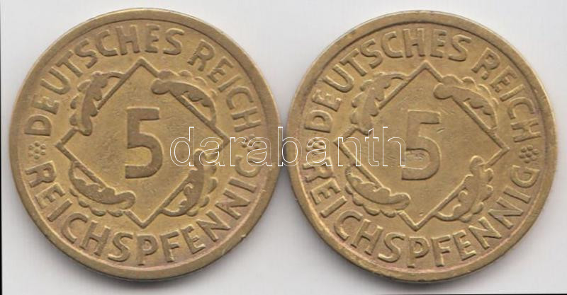 Német Birodalom/Weimari Köztársaság 1924A. 5Rpf + 1925A 5Rpf T:2