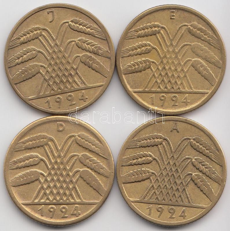 Germany/Weimar Republic 1924A/D/E/J 10 Rentenpfennig 4 diff. pcs C:XF,VF