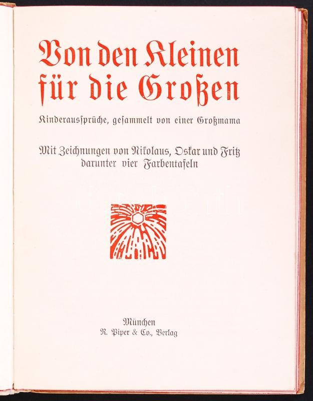 Von der KLeinen für die Großen mit dreißig Zeichnungen von Nikel Oskar... https://www.darabanth.com/de/199-Fernauktion/199.0/Andere-Sammelgebiete/Bucher-Sonstige-Raritaten~20/Von-der-KLeinen-fur-die-GroC39Fen-mit-dreiC39Fig-Zeichnungen-von-Nikel-Oskar-Fritz-Munchen-Piper~II764801