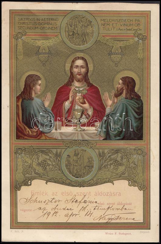 1912 Emlék az első szent áldozásra. Óbudai templomban, Nagy Ferenc alá... https://www.darabanth.com/de/199-Fernauktion/199.0/Andere-Sammelgebiete/Dokument~34/1912-Emlek-az-elso-szent-aldozasra-Obudai-templomban-Nagy-Ferenc-alairasaval-20C39713-cm~II780985