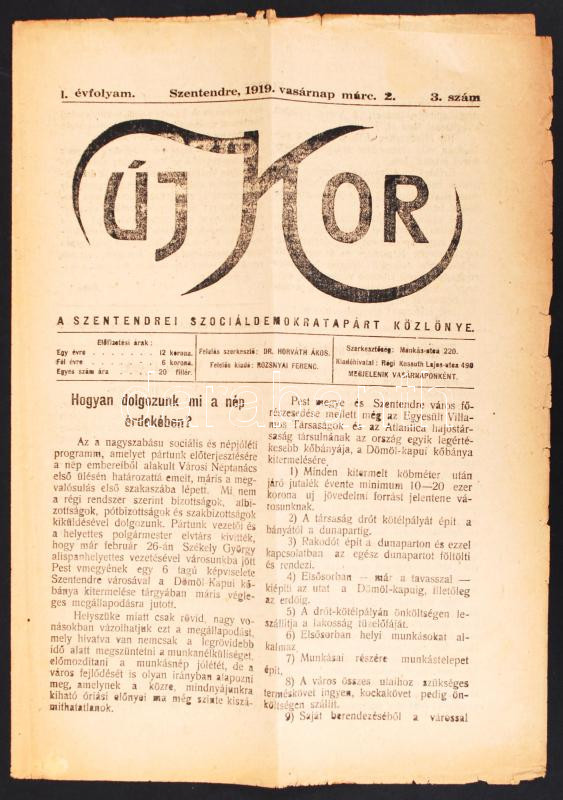 1919 Az Új kor c. lap 3. száma a Tanácsköztársaság híreivel https://www.darabanth.com/de/199-Fernauktion/199.0/Andere-Sammelgebiete/Drucksachen~6/1919-Az-Uj-kor-c-lap-3-szama-a-Tanacskoztarsasag-hireivel~II774943