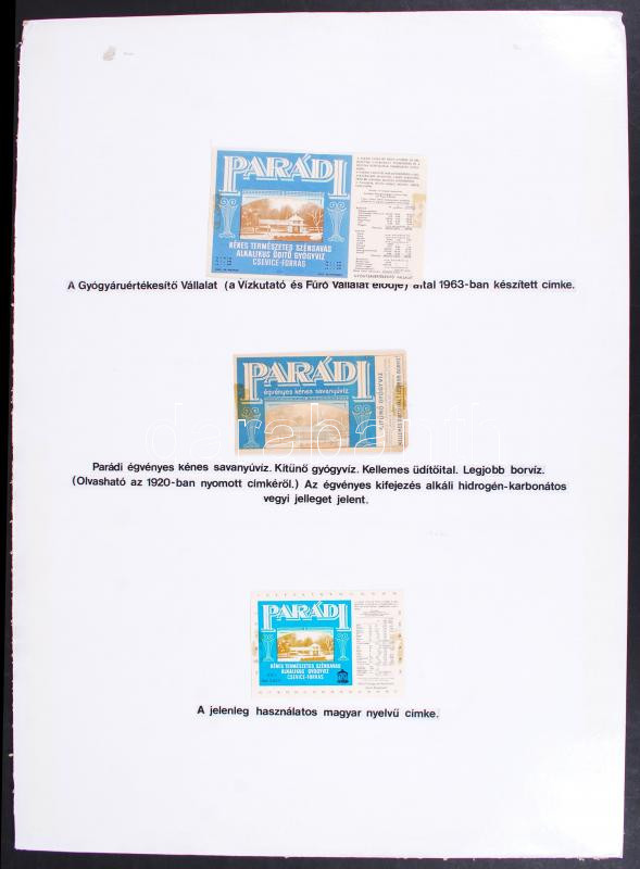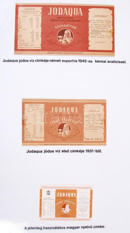 cca 1930-1970 A Hunyadi keserűvíz története. Korabeli italcímkék, reklámok, fotó reprodukciók 12 db nagyméretű kiűllítási tablón, magyarázó szövegekkel 70x50 cm
