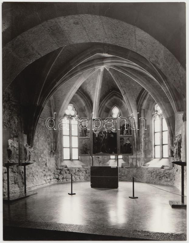 Beschreibung: 1964 Dobos Lajos: Helyreállított gótikus várkápolna a budai királyi palotában, feliratozva, 23x18 cm.