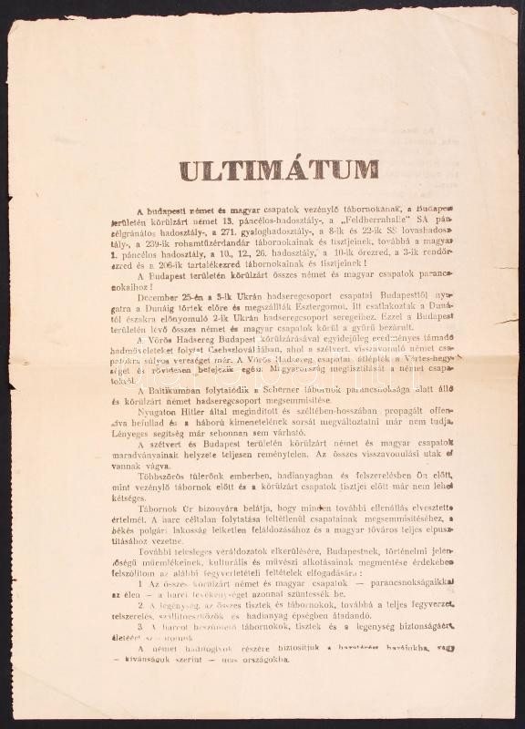 1944 december A szovjet hadsereg által a magyar hadsereghez Budapest f... https://www.darabanth.com/de/199-Fernauktion/199.0/Andere-Sammelgebiete/Militaria~4/1944-december-A-szovjet-hadsereg-altal-a-magyar-hadsereghez-Budapest-feladasara-intezett-ultima~II781159