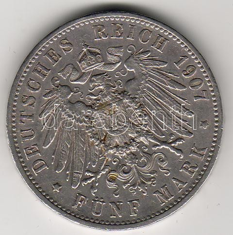 D.Reich/ Württemberg 1907 Wilhelm II. 5M ezüst/ Silber T:3+ https://www.darabanth.com/de/2-Gross-Auktion/2.1/Numismatik/~526/DReich-Wurttemberg-1907-Wilhelm-II-5M-ezust-Silber-T3plus~II41985