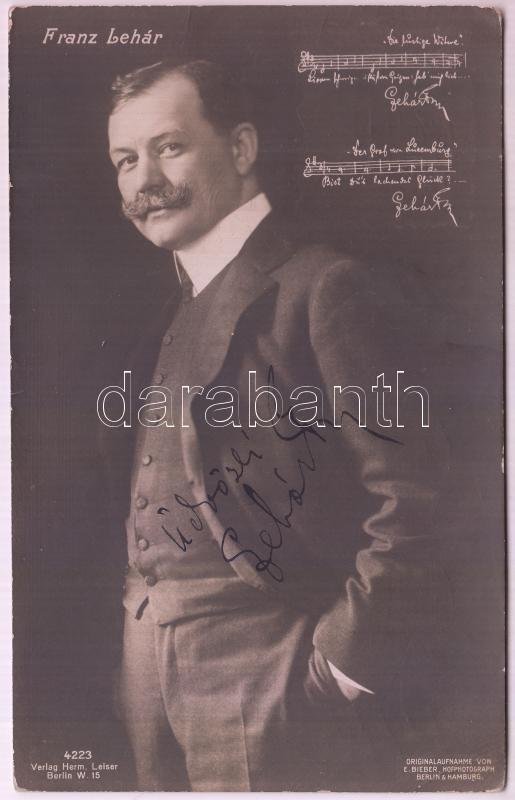 Lehár Ferenc (1870-1948) zeneszerző, operettkomponista, karmester aláí... https://www.darabanth.com/de/20-Gross-Auktion/20.1/Kunst-Dokumente/Signatur~6926/Lehar-Ferenc-1870-1948-zeneszerzo-operettkomponista-karmester-alairasa-fotolapon~II966229