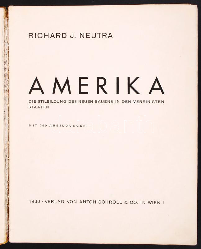 Neutra, Richard J.: Amerika. Wien, 1930, Verlag von Anton Schroll & Co... https://www.darabanth.com/de/200-Fernauktion/200.0/Andere-Sammelgebiete/Bucher-Sonstige-Raritaten~200026/Neutra-Richard-J-Amerika-Wien-1930-Verlag-von-Anton-Schroll-Co-Kiadoi-egeszvaszon-kote~II783224