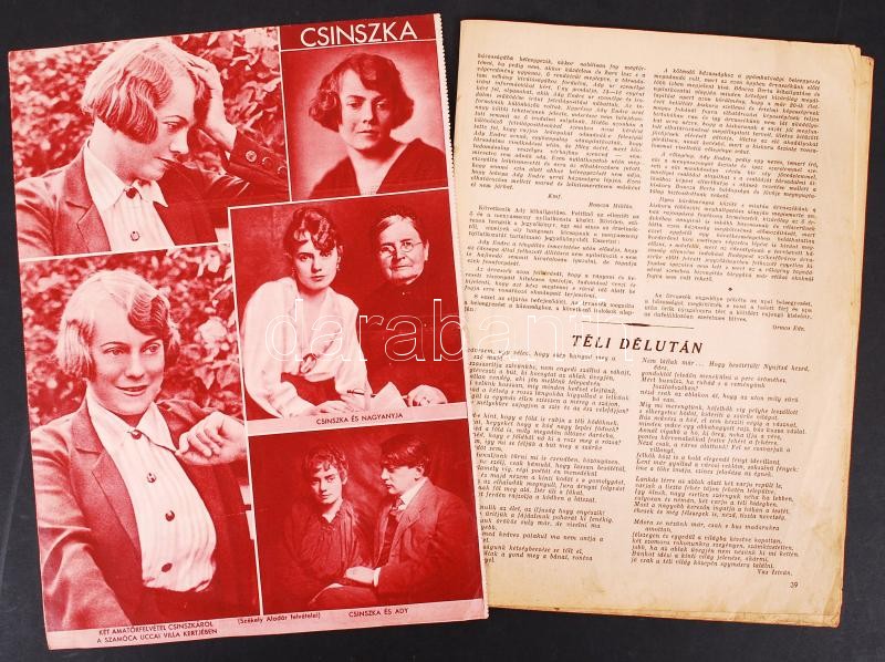 1934 Csinszkáról szóló cikkek, képek különböző újságokból, Megsárgult ... https://www.darabanth.com/de/200-Fernauktion/200.0/Andere-Sammelgebiete/Drucksachen~200009/1934-Csinszkarol-szolo-cikkek-kepek-kulonbozo-ujsagokbol-Megsargult-aktak-a-volege~II789780