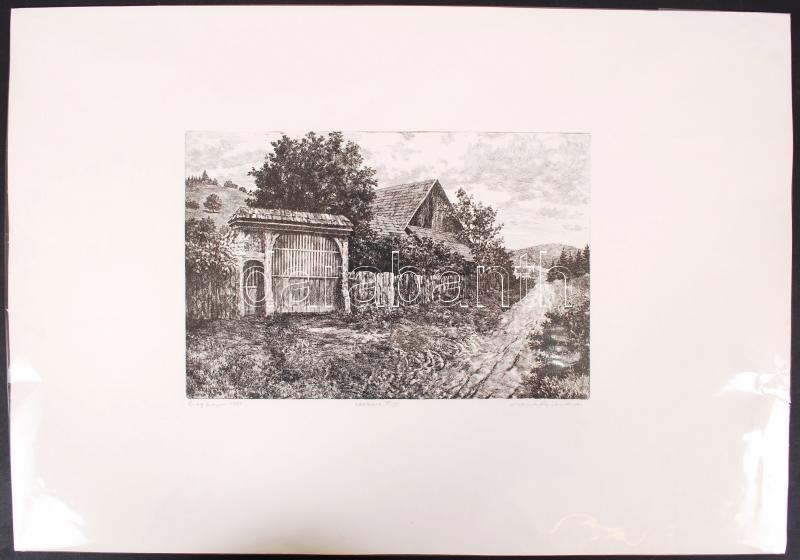 Beschreibung: Csanády András (1929-): Öreg kapu. Rézkarc VI/VII, papír, jelzett, 19×28 cm