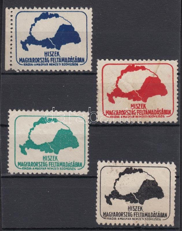 Beschreibung: cca 1920 4 db "Hiszek Magyarország feltámadásában" feliratú levélzáró, kiadja: A Magyar Nemzeti Szövetség.