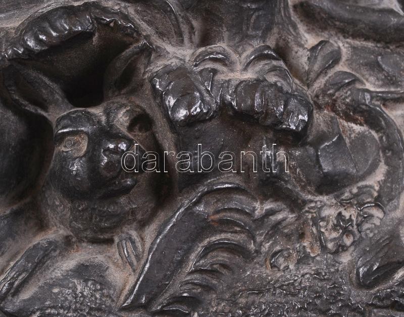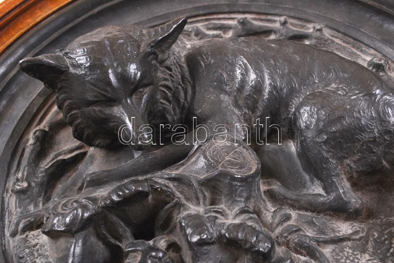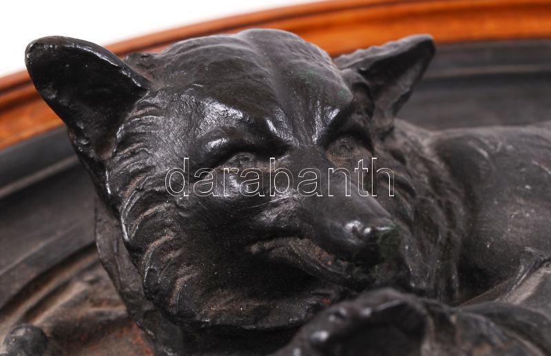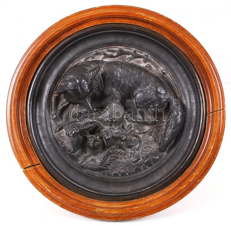 1889 A párizsi világkiállításra készült öntöttvas asztali dísz fa keretben / 1889 Paris Expo cast iron decoration d: 40 cm