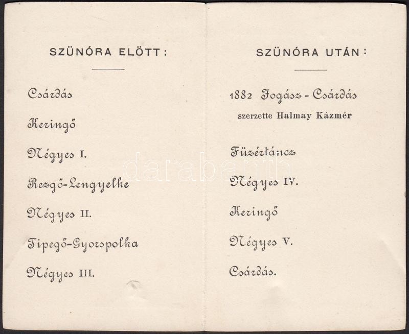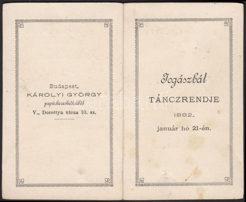 1882 A Jogászbál táncrendje / dance card https://www.darabanth.com/de/201-Fernauktion/201.0/Andere-Sammelgebiete/Drucksachen~200011/1882-A-Jogaszbal-tancrendje-dance-card~II798167