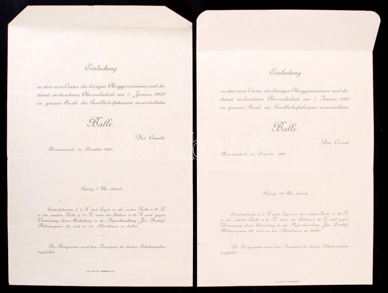 1904, 1910, Hermannstadt (Nagyszeben), Meghívó az "Obergymnasium" bálj... https://www.darabanth.com/de/201-Fernauktion/201.0/Andere-Sammelgebiete/Drucksachen~200011/1904-1910-Hermannstadt-Nagyszeben-Meghivo-az-Obergymnasium-baljara-nemet-nyelven--3Cbr3E~II793384