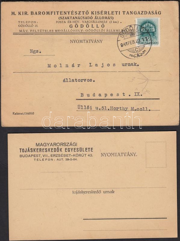 Beschreibung: 1934-1941 Bp., A Magyarországi Tojáskereskedők Egyesülete és a Magyar Királyi Baromfitenyésztő Kísérleti Tangazdaság Levelezőlapja