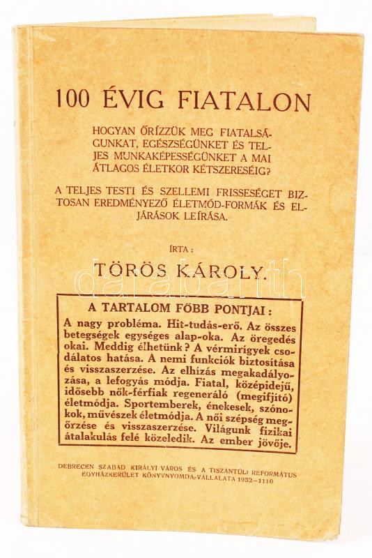 cca 1932 Debrecen, Törös Károly: 100 évig fiatalon. Hogyan őrizzük meg... https://www.darabanth.com/de/201-Fernauktion/201.0/Andere-Sammelgebiete/Drucksachen~200011/cca-1932-Debrecen-Toros-Karoly-100-evig-fiatalon-Hogyan-orizzuk-meg-fiatalsagunkat-egesz~II792259