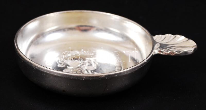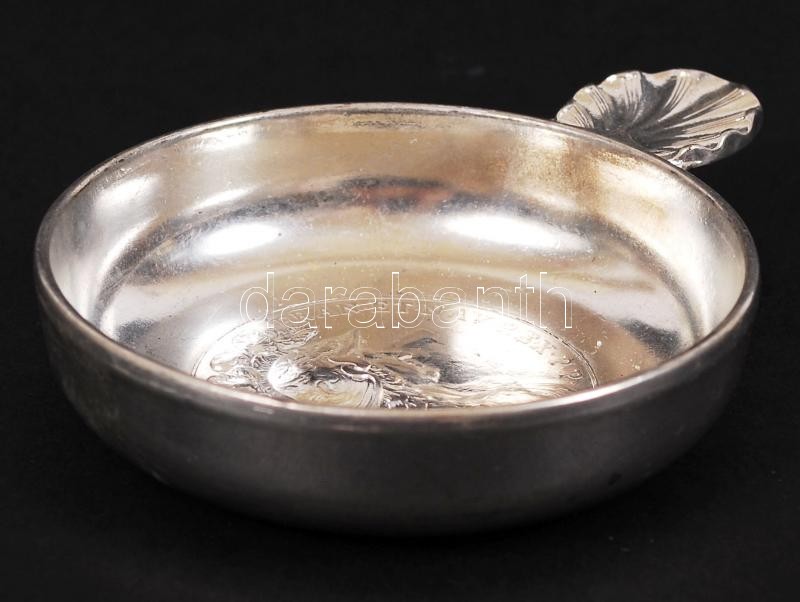 Beschreibung: Ezüstözött francia borkóstoló tálka, XIV. Lajos képmásával, jelzett, d:8 cm