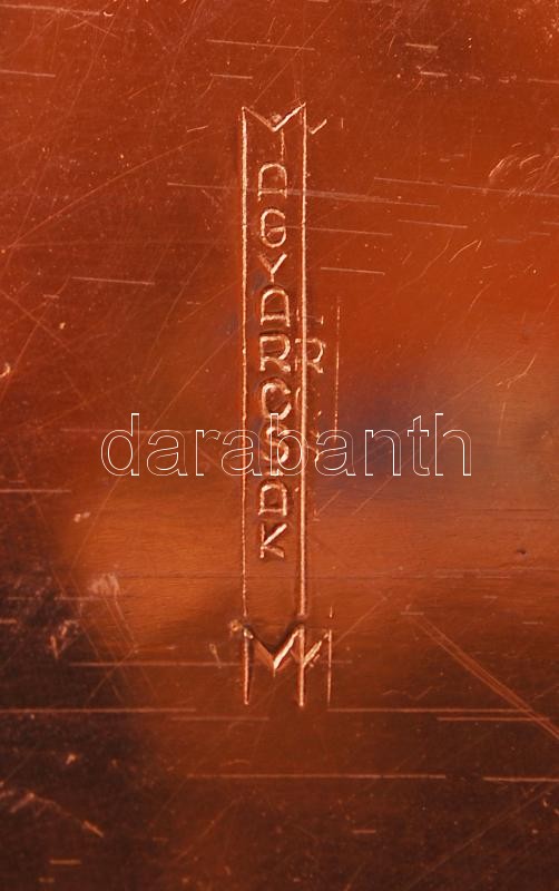 Iparművész réz doboz, fa betéttel, 17×12 cm
