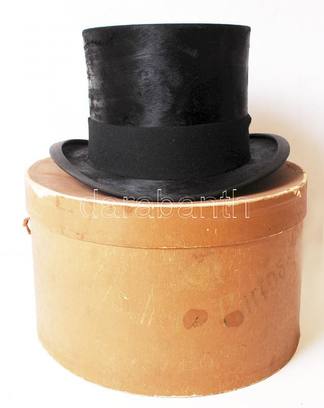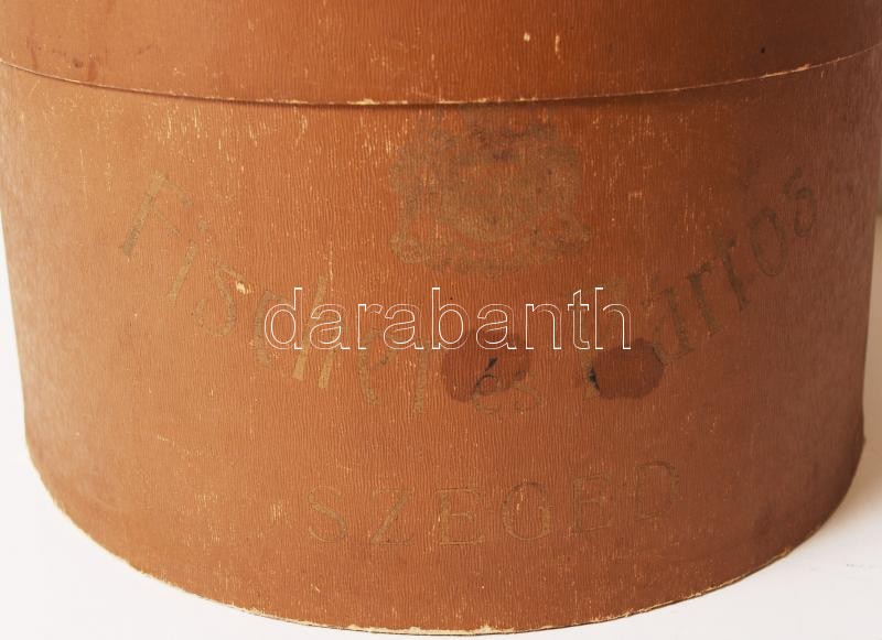 cca 1910 Szép állapotú nyúlszőr cilinder eredeti kalapdobozban. Fische... https://www.darabanth.com/de/201-Fernauktion/201.0/Andere-Sammelgebiete/Flohmarkt~200019/cca-1910-Szep-allapotu-nyulszor-cilinder-eredeti-kalapdobozban-Fischer-es-Partos-Szeged-O~II796649