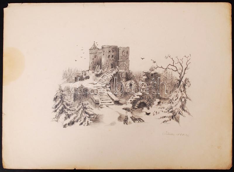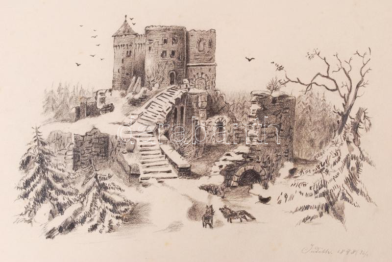 Bónis Judith: Farkasok a várromnál (1898). Ceruza, papír, apró szakadá... https://www.darabanth.com/de/201-Fernauktion/201.0/Andere-Sammelgebiete/Gemalde-und-Grafiken~200001/Bonis-Judith-Farkasok-a-varromnal-1898-Ceruza-papir-apro-szakadasok-jelzett-15C39721-cm~II794501