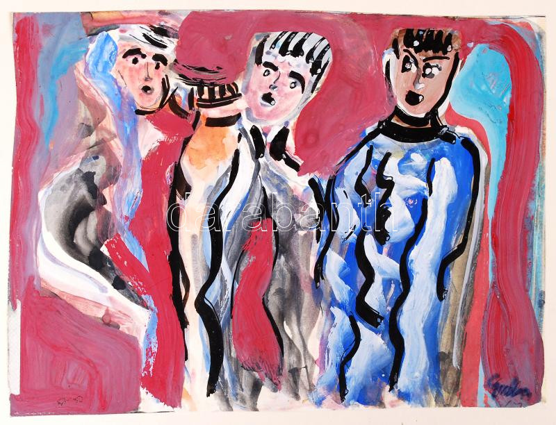Beschreibung: Gábor M jelzéssel: Barátok. Vegyes technika, papír, jelzett, 17×23 cm