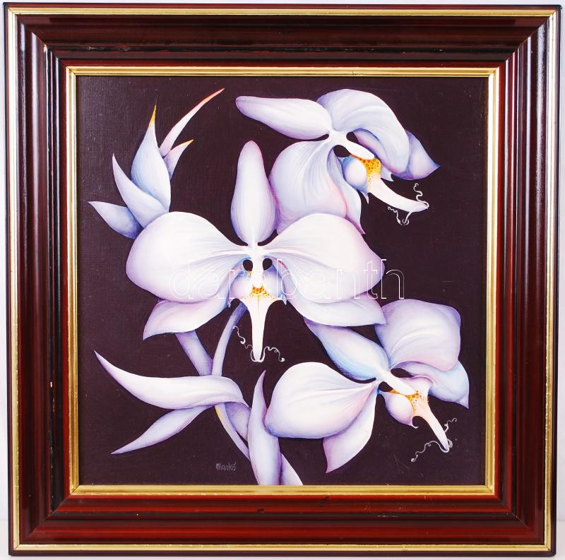 Beschreibung: Markó Erzsébet (1947-): Orchidea. Akril, farost, jelzett, keretben, 40×40 cm