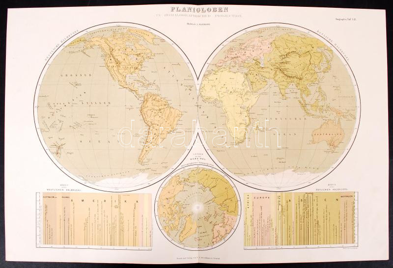 cca 1890 Világtérkép német nyelven, Brockhaus /