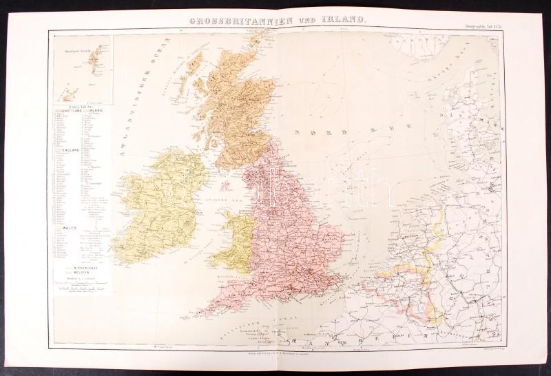 Maps from Brockhaus, 34,5x55cm; cca 1890 Nagy Britannia, német nyelven, Brockhaus /