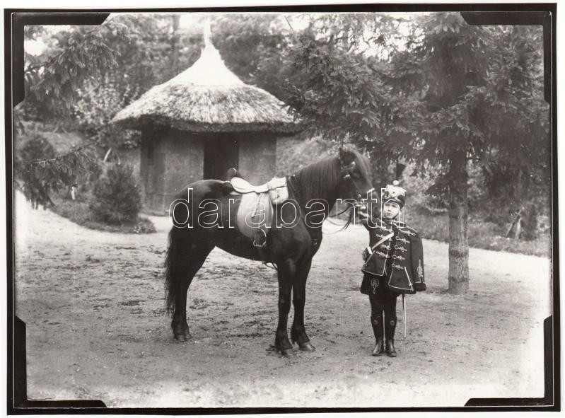 Beschreibung: cca 1890-1900 A legkisebb huszár, eredeti üveglemezről készült későbbi kontakt másolat, 12x17 cm