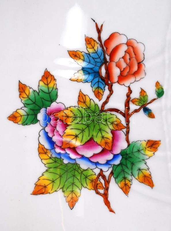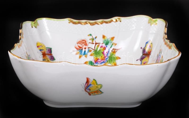 Beschreibung: Herendi Viktória mintás tál, kézzel festett, jelzett, festés hibával, 25×25 cm, m:9 cm