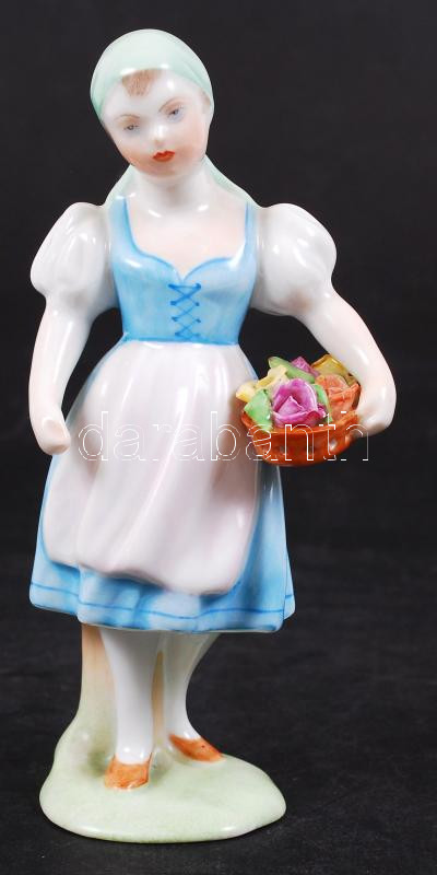 Beschreibung: Lányka virágkosárral, herendi porcelán, kézzel festett, hibátlan, jelzett, m: 14 cm