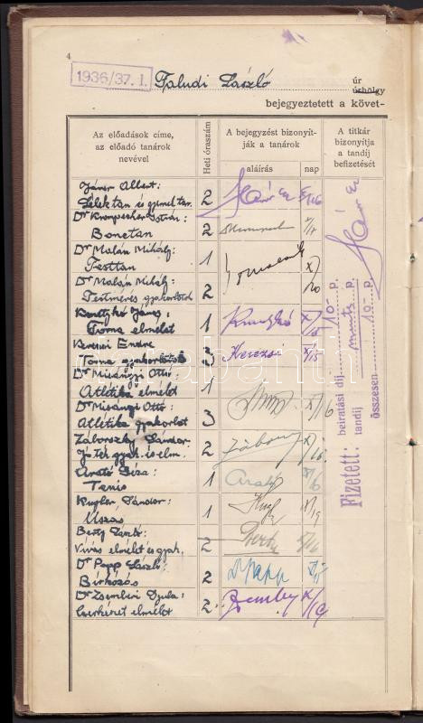 1936-1940 Bp., A Magyar Királyi testnevelési Főiskola leckekönyve sok ... https://www.darabanth.com/de/201-Fernauktion/201.0/Andere-Sammelgebiete/Signatur~200030/1936-1940-Bp-A-Magyar-Kiralyi-testnevelesi-Foiskola-leckekonyve-sok-alairassal~II798463