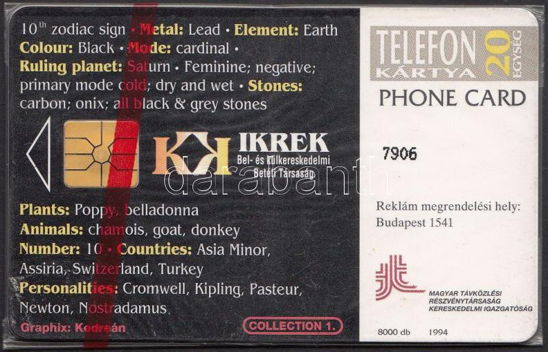 1994-es Ikrek csillagjegyet ábrázoló telefonkártya, használatlan https://www.darabanth.com/de/201-Fernauktion/201.0/Andere-Sammelgebiete/Telefonkarte~200038/1994-es-Ikrek-csillagjegyet-abrazolo-telefonkartya-hasznalatlan~II798363