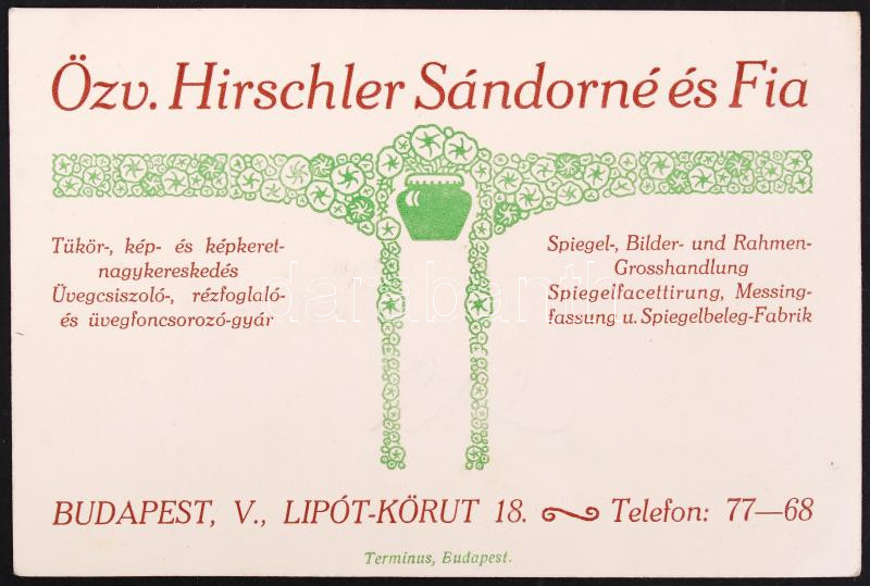 Bp., V. Hirschler tükör és képkeret számoló cédula https://www.darabanth.com/de/201-Fernauktion/201.0/Andere-Sammelgebiete/Werbungen~200034/Bp-V-Hirschler-tukor-es-kepkeret-szamolo-cedula~II798191