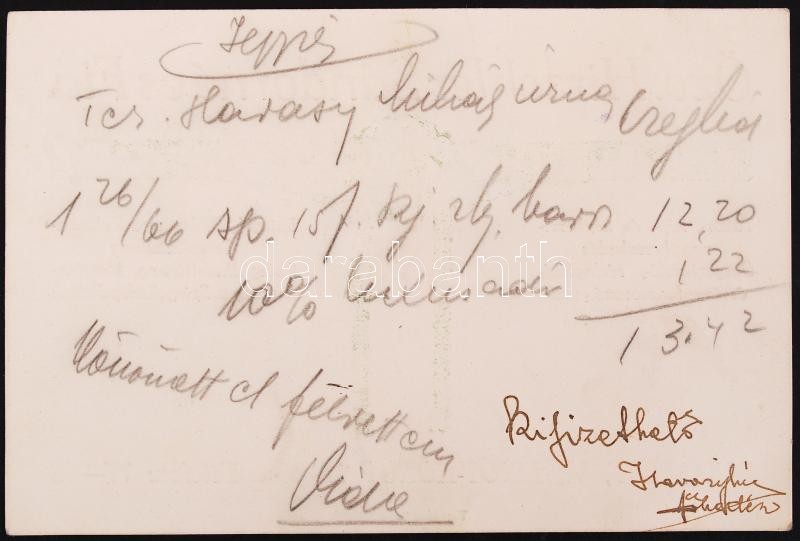 Beschreibung: Bp., V. Hirschler tükör és képkeret számoló cédula