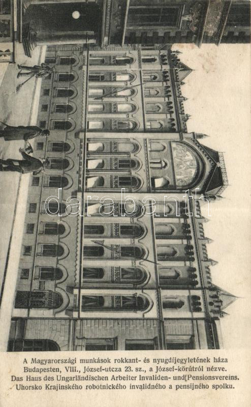 Budapest VIII. József utca 23. Munkások rokkant- és nyugdíjegyletének ... https://www.darabanth.com/de/201-Fernauktion/201.0/Ansichtskarten/Ungarn~900006/Budapest-VIII-Jozsef-utca-23-Munkasok-rokkant-es-nyugdijegyletenek-haza~II702711
