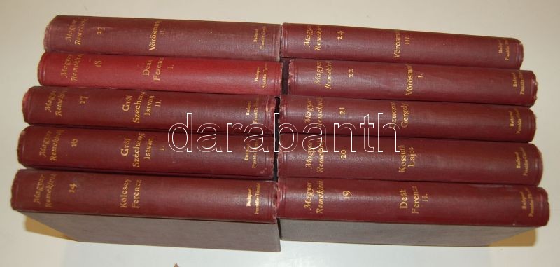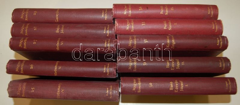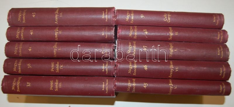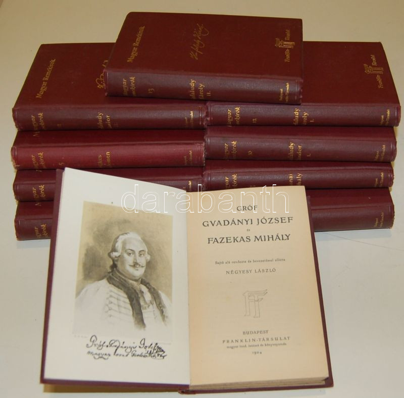 Magyar remekírók sorozat A magyar irodalom főművei sorozat 44 kötete. 1904-1906. Franklin. Az írók arcképével illusztrálva. Egységes, aranyozott kiadói egészvászon kötésben. Egy két kötettől eltekintve jó állapotú sorozat 44 db