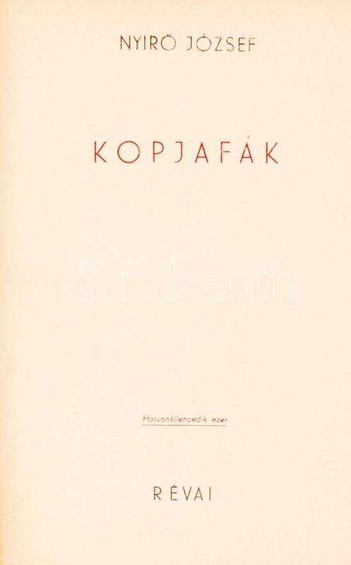 Nyírő József: Kopjafák. Bp., 1944, Révai. Kiadói félvászon kötés, jó á... https://www.darabanth.com/de/202-Fernauktion/202.0/Andere-Sammelgebiete/Bucher-Sonstige-Raritaten~200036/Nyiro-Jozsef-Kopjafak-Bp-1944-Revai-Kiadoi-felvaszon-kotes-jo-allapotban~II803483