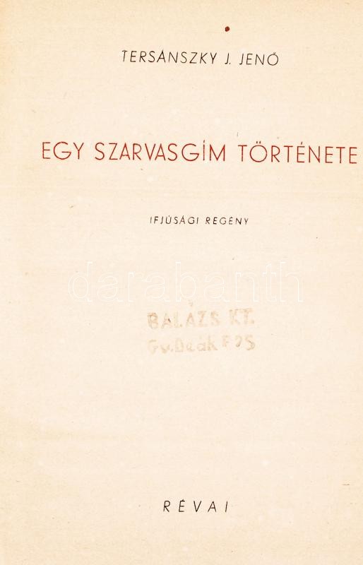 Tersánszky J. Jenő: Egy szarvasgím története. Budapest 1948. Révai. https://www.darabanth.com/de/202-Fernauktion/202.0/Andere-Sammelgebiete/Bucher-Sonstige-Raritaten~200036/Tersanszky-J-Jeno-Egy-szarvasgim-tortenete-Budapest-1948-Revai~II765935