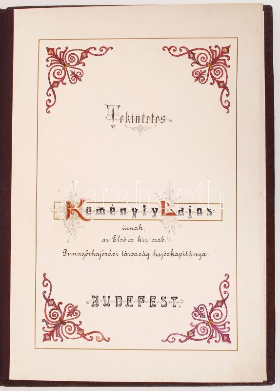 1917 DDSG díszes oklevél Keményfy Lajos úrnak, az Első cs. kir. szab. Dunagőzhajőzási társaság kapitányának 40 éves szolgálati jubileumára. Készült Rittenbacher László könyvkötészetében. 26x40 cm