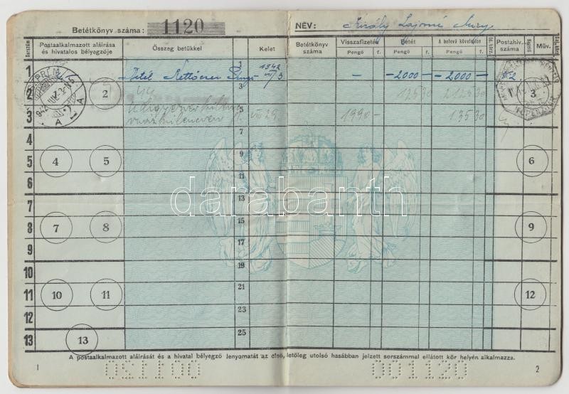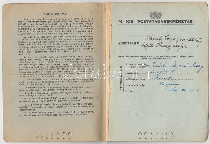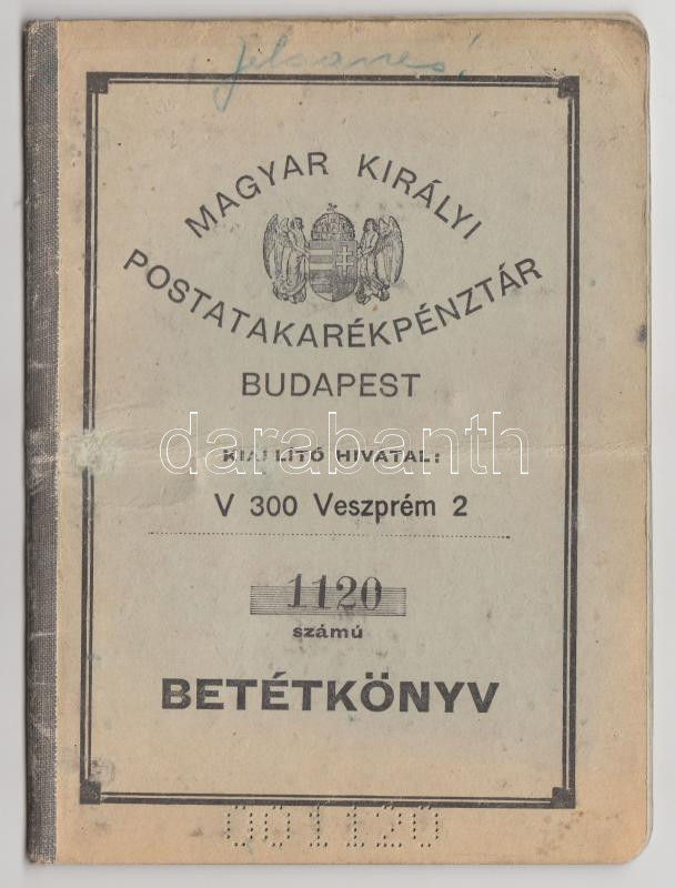 1942 Magyar Királyi Postatakarékpénztár betétkönyve. https://www.darabanth.com/de/202-Fernauktion/202.0/Andere-Sammelgebiete/Dokument~200028/1942-Magyar-Kiralyi-Postatakarekpenztar-betetkonyve~II781802