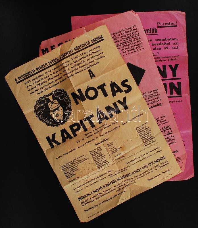 cca 1930 Pestúlyhely 3 db műsoros est plakátja, mindegyik Ferdinkó Bél... https://www.darabanth.com/de/202-Fernauktion/202.0/Andere-Sammelgebiete/Drucksachen~200007/cca-1930-Pestulyhely-3-db-musoros-est-plakatja-mindegyik-Ferdinko-Bela-szereplesevel-vagy-re~II725439