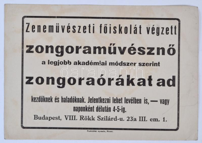 cca 1940 Zongoratanár nagyméretű reklámkártya 24x17 cm https://www.darabanth.com/de/202-Fernauktion/202.0/Andere-Sammelgebiete/Drucksachen~200007/cca-1940-Zongoratanar-nagymeretu-reklamkartya-24x17-cm~II672924