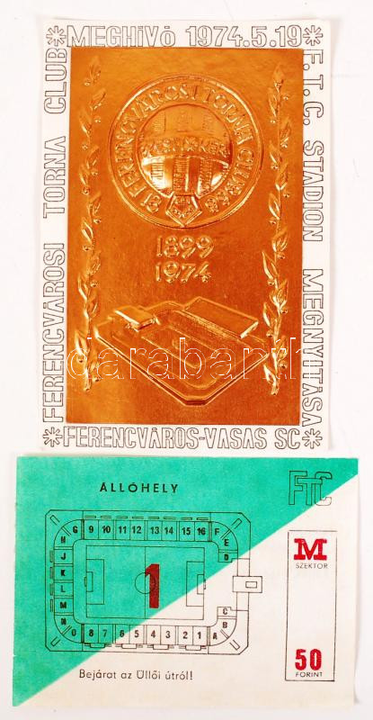 1974 Emlékplakett és meghívó a F.T.C. Stadion megnyitása alkalmából https://www.darabanth.com/de/202-Fernauktion/202.0/Andere-Sammelgebiete/Flohmarkt~200024/1974-Emlekplakett-es-meghivo-a-FTC-Stadion-megnyitasa-alkalmabol~II801566